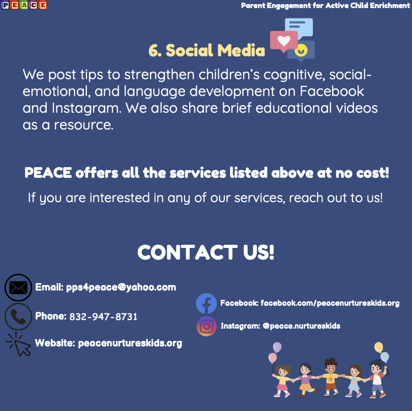 “Our students and families have benefited from working with PEACE and their dedicated group of volunteers. In the past, the volunteers have come and worked with our parents and students on how learning can be found in everyday objects and routines. We love seeing the excitement and feeling of empowerment that we see in our families after working with PEACE. The volunteers’ enthusiasm for learning is absolutely infectious!”